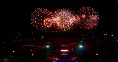الالعاب الناريه تضئ سماء استاد القاهرة احتفالا بفوز منتخب مصر للمونديال