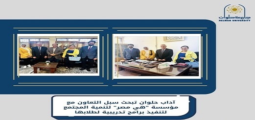آداب جامعة حلوان تبحث سبل التعاون مع مؤسسة “هي مصر” لتنمية المجتمع لتنفيذ برامج تدريبية لطلابها
