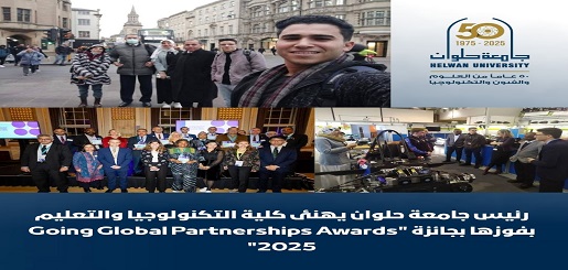 رئيس جامعة حلوان يهنئ كلية التكنولوجيا والتعليم بفوزها بجائزة “Going Global Partnerships Awards 2025”