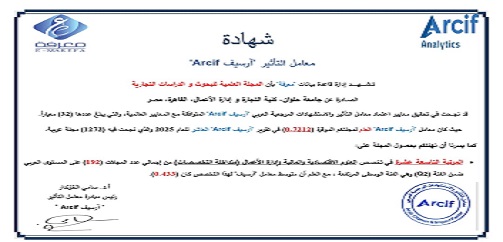 مجلة كلية التجارة بجامعة حلوان ضمن أفضل المجلات العربية في تصنيف معامل التأثير والاستشهادات المرجعية العربي (ARCIF) لعام 2025