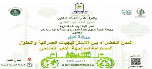 ورشة عمل بكلية الهندسة بالمطرية جامعة حلوان حول “المدن الخضراء بين الاستراتيجيات العمرانية والحلول المستدامة لمواجهة التغير المناخي