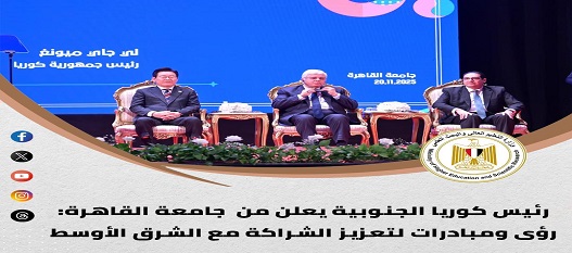 شهدت جامعة القاهرة لقاءًا موسعًا مع الرئيس الكوري لى جاى ميونغ في أول زيارة رسمية لمصر منذ توليه منصبه في يونيو 2025، وذلك لإلقاء كلمة حول مبادرات كوريا الجنوبية في الشرق الأوسط، وذلك بحضورالدكتور محمد أيمن عاشور وزير التعليم العالي والبحث العلمي، والسيد محمد عبد اللطيف وزير التربية والتعليم، ود.محمد سامي عبدالصادق رئيس جامعة القاهرة، واعرب رئيس جمهورية كوريا عن سعادته بالتواجد داخل جامعة القاهرة ذات التاريخ والحضارة، وهي أول جامعة يقوم بزيارتها، مشيرًا إلى أن السبب في هذه الزيارة هو اللقاء مع الطلاب الذين يمثلون القوة التي تدفع مستقبل العلاقات بين البلدين، لافتًا إلى مرور ٣٠ عام على العلاقات بين مصر وكوريا، وأنهما يمتلكان تاريخا عريقا يمتد لآلاف السنين، وأشار وزير التعليم العالي والبحث العلمي، إلى أن الشراكة التي تجمع بين مصر وكوريا الجنوبية أثمرت عن برامج أكاديمية وبحثية متميزة، ومشروعات صناعية وتقنية رائدة تُعبر عن رؤيتهم المشتركة التي تقوم علي الإستثمار في الإنسان وبناء اقتصاد قائم علي المعرفة، انطلاقا من إيمان الدولة المصرية فى ظل قيادة فخامة الرئيس عبد الفتاح السيسي بأهمية الانفتاح والتعاون الدولي وتعزيز الشراكات الفاعلة مع الدول الصديقة، وأن زيارة الرئيس لي جاي ميونغ تمثل دفعة قوية لهذه الجهود وتفتح آفاقا أوسع أمام الشباب والمؤسسات العلمية بمصر، متطلعًا إلي بدء مرحلة جديدة من العمل المشترك من أجل بناء مستقبل أكثر إزدهارًا للبلدين، كما أكد الدكتور محمد سامي عبدالصادق أن زيارة الرئيس الكوري ليست حدثًا بروتوكوليًا فحسب، بل تمثل بداية لمسار استراتيجي جديد بين جامعة القاهرة والجامعات الكورية تنعكس نتائجه الإيجابية علي شباب البلدين، وتجسد الاحترام المتبادل الذي يجمع بينهما، ويؤكد الرغبة في بناء مستقبل أفضل.
