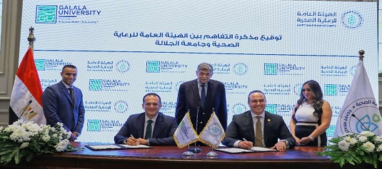 في خطوة جديدة لتعزيز التعاون المؤسسي ودعم منظومة التدريب الطبي في مصر، أعلنت جامعة الجلالة توقيع مذكرة تفاهم مع الهيئة العامة للرعاية الصحية، وذلك بين كلٍّ من الدكتور محمد الشناوي رئيس جامعة الجلالة، والدكتور أحمد السبكي رئيس مجلس إدارة الهيئة العامة للرعاية الصحية، تحت رعاية وحضور الدكتور اشرف حاتم، رئيس مجلس امناء جامعة الجلالة.
