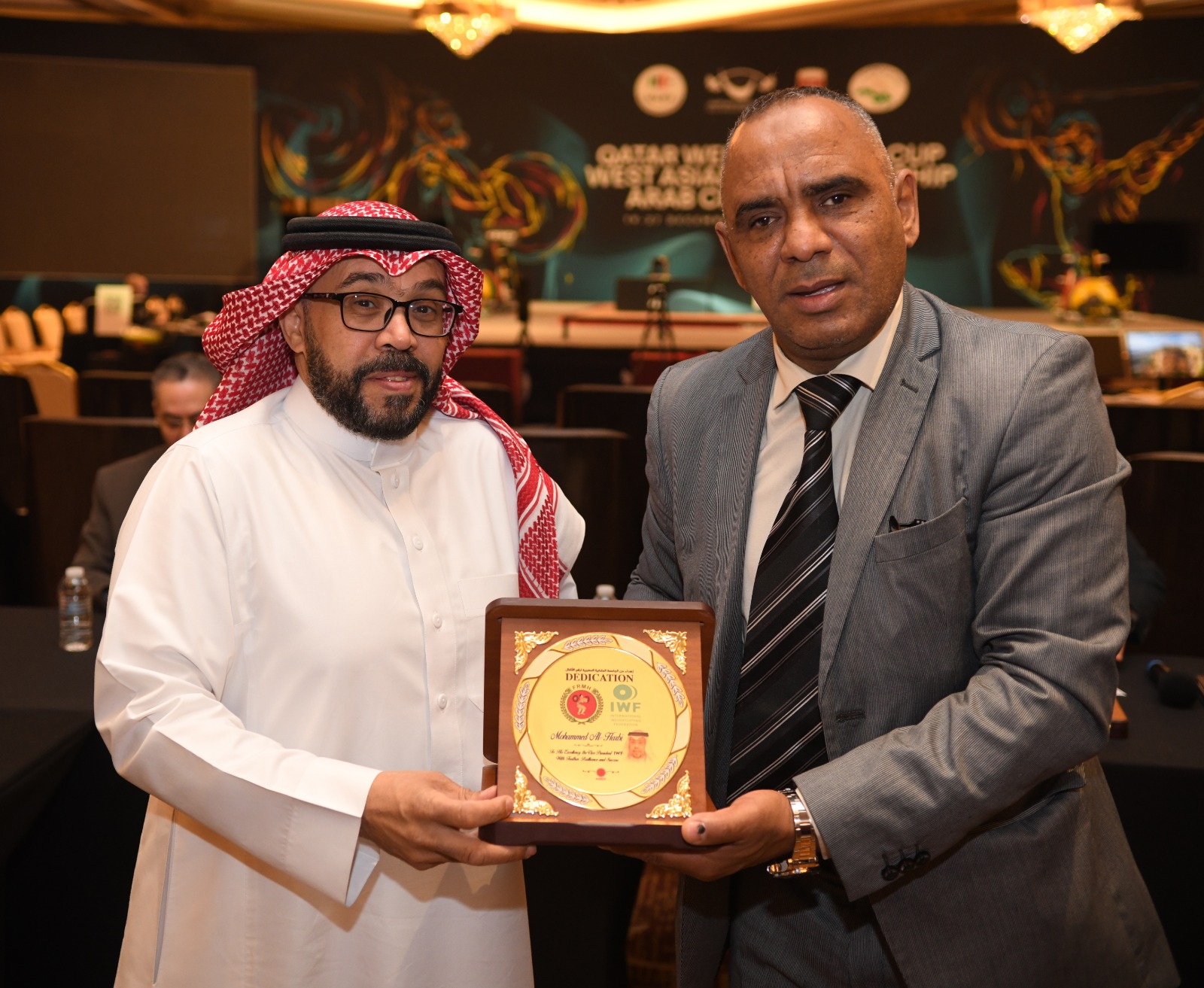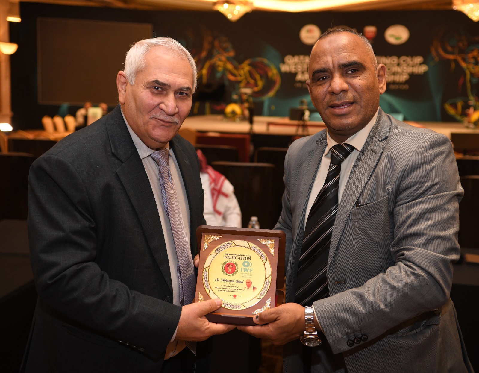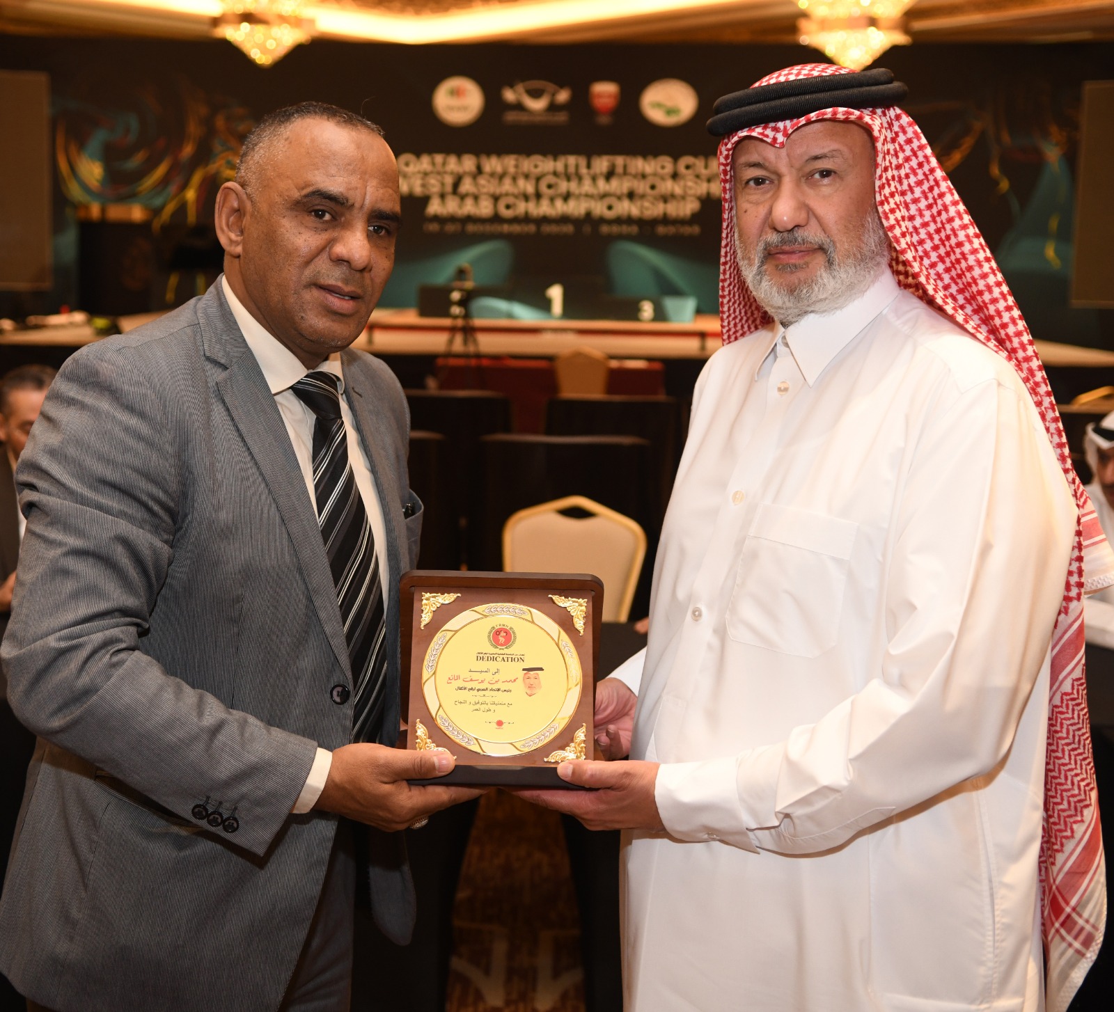 وشمل التكريم كلًا من: محمد حسن جلود الشمري رئيس الاتحاد الدولي لرفع الأثقال (IWF)، ومحمد الحربي رئيس الاتحاد السعودي لرفع الأثقال، وخالد المهلهل رئيس الاتحاد الأفريقي لرفع الأثقال، وكمال سعيدي رئيس الاتحاد الجزائري لرفع الأثقال، وعبدالإله لعراش رئيس الاتحاد المغربي لرفع الأثقال، وحسنين الشيخ رئيس الاتحاد السوري لرفع الأثقال، وفهد بن سعيد الغماري رئيس الاتحاد العُماني لرفع الأثقال، وعبدالمنعم سوف الجين الأمين المالي بالاتحاد الأفريقي، إلى جانب الدكتور مصطفى صالح مهدي أمين عام الاتحاد العربي لرفع الأثقال، ومحمد خميس النقبي المدير التنفيذي للاتحاد الإماراتي لرفع الأثقال.