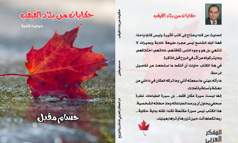 صدر عن دار المفكر العربي للنشر والتوزيع بالقاهرة، كتاب “حكايات من بلاد القيقب” للكاتب الصحفي المصري حسام مقبل، المقيم حاليا في كندا، وهو عمل يتناول انطباعات المؤلف عن الحياة في هذا البلد وتحدياته الطبيعية والإنسانية داخل مجتمع متعدد الثقافات والوجوه.