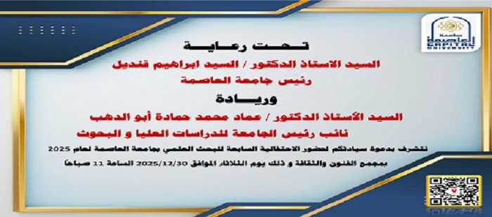 وتأتي هذه الاحتفالية في إطار حرص جامعة العاصمة على دعم منظومة البحث العلمي، وتشجيع الإبداع والابتكار، وتكريم الباحثين المتميزين، وتسليط الضوء على الإنجازات البحثية التي تسهم في خدمة المجتمع وتحقيق أهداف التنمية المستدامة.