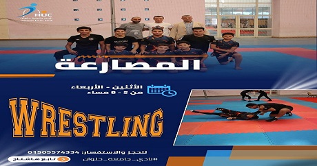 في إطار حرص جامعة العاصمة على دعم الأنشطة الرياضية وتنمية مواهب الطلاب، أعلن نادي جامعة حلوان عن فتح باب الاشتراك في تدريبات المصارعة تحت رعاية الدكتور السيد قنديل رئيس الجامعة ورئيس مجلس إدارة النادي، الدكتور أحمد فاروق المدير التنفيذي للنادي، تحت إشراف الكابتن حسن علي.