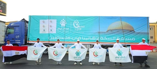 وتحمل الشاحنات كميات كبيرة من المواد الغذائية المتنوعة والبطاطين والألحفة، بجانب مياه الشرب، وذلك ضمن الجهود المضنية للدولة المصرية والتحالف الوطني في هذا الشأن منذ الوهلة الأولى للحرب.