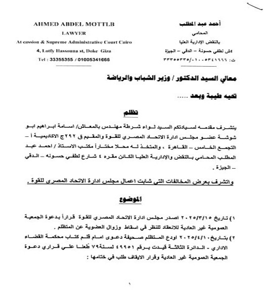كما تضمنت المذكرة، أن الجهات الرقابية تمتلك كافة المستندات الدامغة التي تثبت تلك المخالفات، من بينها نشرات البطولات الرسمية، وأوراق السفر، وتعليمات المسابقات، والتي تُظهر أن الاتحاد المصري للقوة ارتكب تجاوزات قانونية وتنظيمية ومالية خطيرة على مدار سنوات طويلة، ما يستوجب فتح تحقيق عاجل من وزارة الشباب والرياضة والجهات المختصة لكشف الحقائق ومحاسبة المسؤولين عنها.