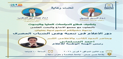 في إطار حرص جامعة العاصمة على تعزيز دورها الريادي في خدمة المجتمع وتنمية الوعي الثقافي والفكري لدى الشباب، وتحت رعاية الأستاذ الدكتور السيد قنديل رئيس جامعة العاصمة، وبحضور الأستاذ الدكتور عماد أبو الدهب نائب رئيس الجامعة للدراسات العليا والبحوث، ينظم قطاع الدراسات العليا والبحوث بالتعاون مع مجمع الإبداع والبحث العلمي تحت إشراف الدكتورة مايسة محمد نبيه مدير المجمع، ندوة علمية بعنوان:  “دور الإعلام في تنمية وعي الشباب المصري”