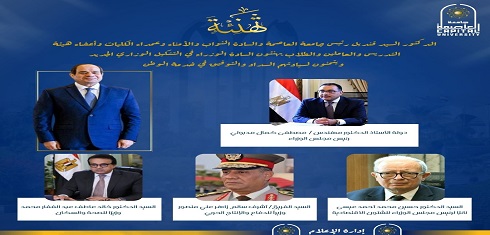 الدكتور “السيد قنديل” رئيس جامعة العاصمة يتقدم بالتهنئة للسيد رئيس مجلس الوزراء والسادة الوزراء الجدد