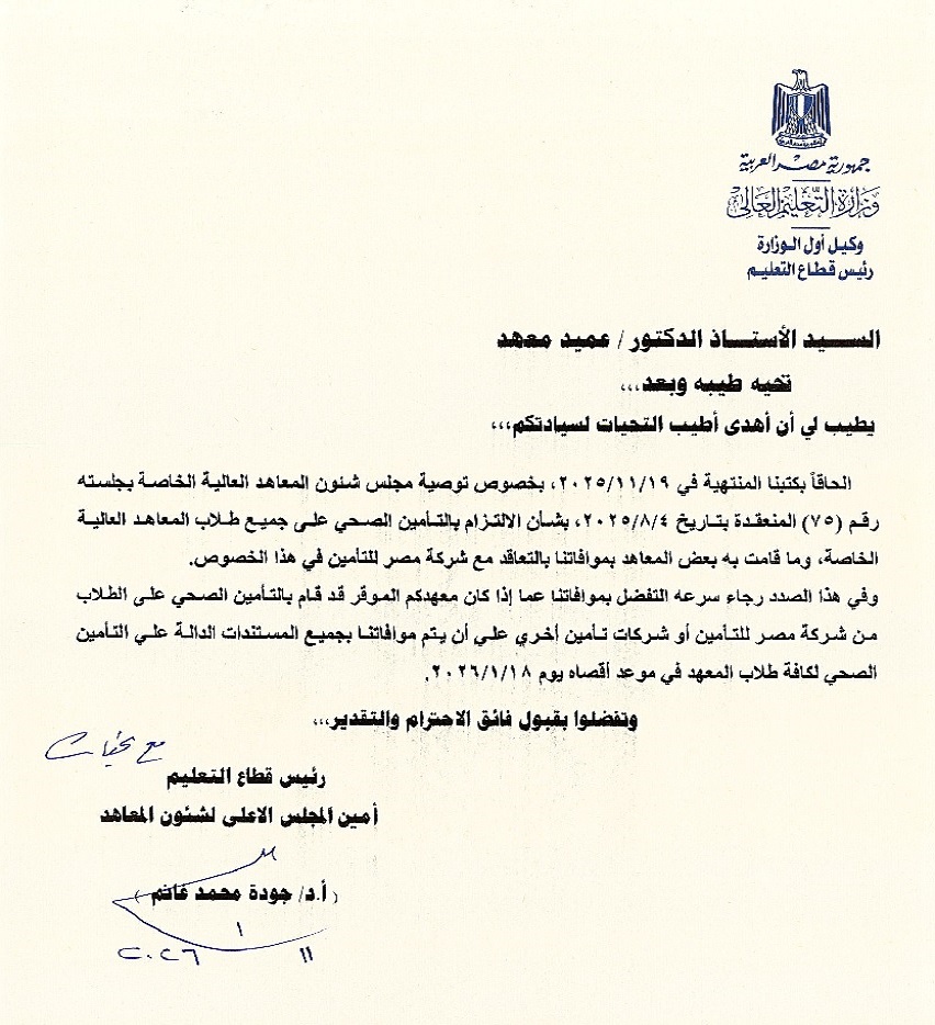 • لكن بدءا من العام الماضى بدأت هذه المعاهد تواجه مشكلات لانهاية لها بعدما أطلق الوزير السابق فيها يد من رشحه بالمخالفة فى شهر ينابر من العام الماضى ليكون قائما بعمل أمين مجلس شئون المعاهد وكذلك قائما بعمل رئيس قطاع التعليم فى الوزارة برغم رفض مجلس الوزراء تعيينه فى هذه المناصب نظرا لكبر سنة الذى إقترب من سن السبعين حيث أنه من مواليد 1957 وهو د0جودة غانم والذى كان يشغل نائب رئيس أكاديمية الشروق ـ إلا أن الوزير السابق التف على رفض مجلس الوزراء وأصر أن يقوم بتعيينه قائما بعمل رئيس قطاع التعليم وقائما بعمل مجلس شئون المعاهد وذلك بالمخالفة لقانون تنظيم الجامعات الذي يحظر شغل الأساتذة المتفرغين الوظائف التنفيذية ، وبالمخالفة أيضا لقانون الخدمة المدنية الذي يحظر ندب عاملين فوق السن القانونية لانتهاء الخدمة خاصة وأنه مسجل فى بطاقة رقمه القومى أنه أستاذ متفرغ ، والغريب أن د0غانم عند توقيعه الآن لأى مستند رسمى يوقعه بالمخالفة أنه ” رئيس قطاع التعليم والأمين العام لمجلس شئون المعاهد ( كما هو موضح بالمستند المرفق ) ولايذكر كلمة ” قائم بعمل ” مما يشكك فى صحة كل هذه المستندات الرسمية الموقعة بهذه الصفة بعد ذلك ـ