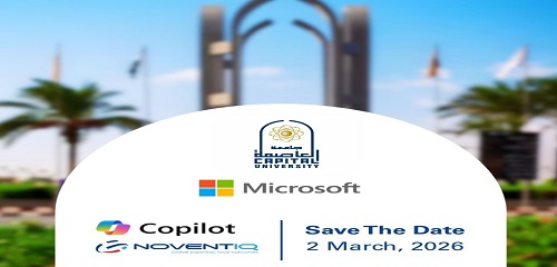 في إطار حرص جامعة العاصمة على تطوير التجربة التعليمية وتعزيز قدرات طلابها وأعضاء هيئة التدريس، تستقبل الجامعة يوم الإثنين القادم الموافق ٢ مارس ٢٠٢٦، ممثلي شركة مايكروسوفت العالمية لأول مرة داخل الحرم الجامعي، حيث يلتقي ممثلي الشركة العالمية، مع الطلاب في منطقة الشعار وأمام البوابة الرئيسية.