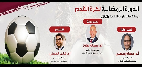 تحت رعاية الدكتور “حسام صلاح مُراد” استكمالاً لمباريات الدورة الرمضانية الرابعة لكرة القدم بمستشفيات جامعة القاهرة 2026