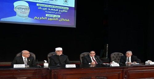 قاعة الاحتفالات الكبري بجامعة القاهرة تستضيف محاضرة لفضيلة مفتي الجمهورية حول فضائل رمضان برعاية وحضور رئيس الجامعة وقياداتها وجموع من طلاب مختلف كليات الجامعة