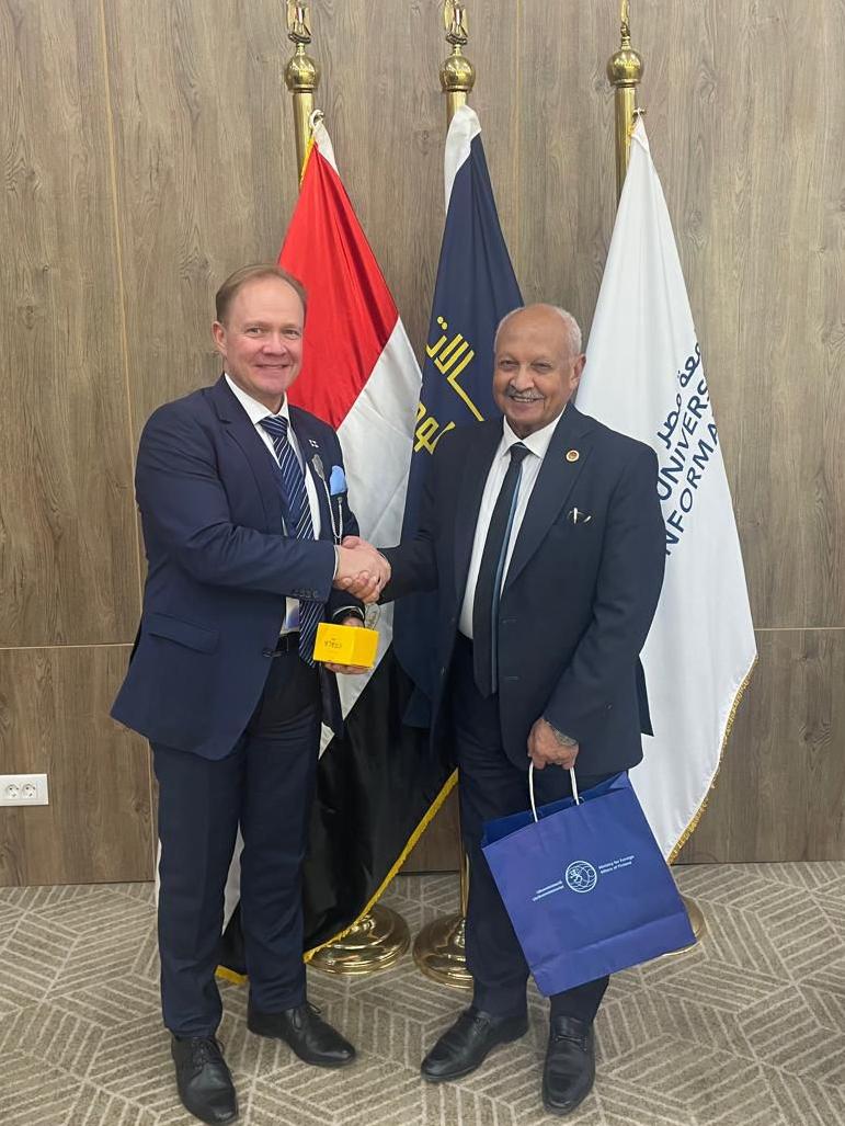وأضاف ان التعاون مع فنلندا يأتي في اطار اهتمام جامعة مصر للمعلوماتية بالشراكات التي تتجاوز التعاون الأكاديمي التقليدي الي الارتباط المباشر بأنظمة الابتكار والصناعة، حيث نرى توافقًا قويًا مع فنلندا، خاصة في: مجالات الابتكار التطبيقي وريادة الأعمال، دمج منظومة الشركات الناشئة، نماذج التعليم المدفوعة بالصناعة، لافتا الي ان الاجتماع مع الجانب الفنلندي ركز على استكشاف التعاون الذي يربط بين طلاب وباحثي EUI والجامعات الفنلندية ومراكز الابتكار والشركات الفنلندية الرائدة في مجالات الذكاء الاصطناعي والاتصالات والتحول الرقمي، وهو امر ذا أهمية خاصة نظرًا لمشاركة قيادات شركات فنلندية رائدة في الاجتماع مثل نوكيا وإليسا بوليستار وسوليتا.